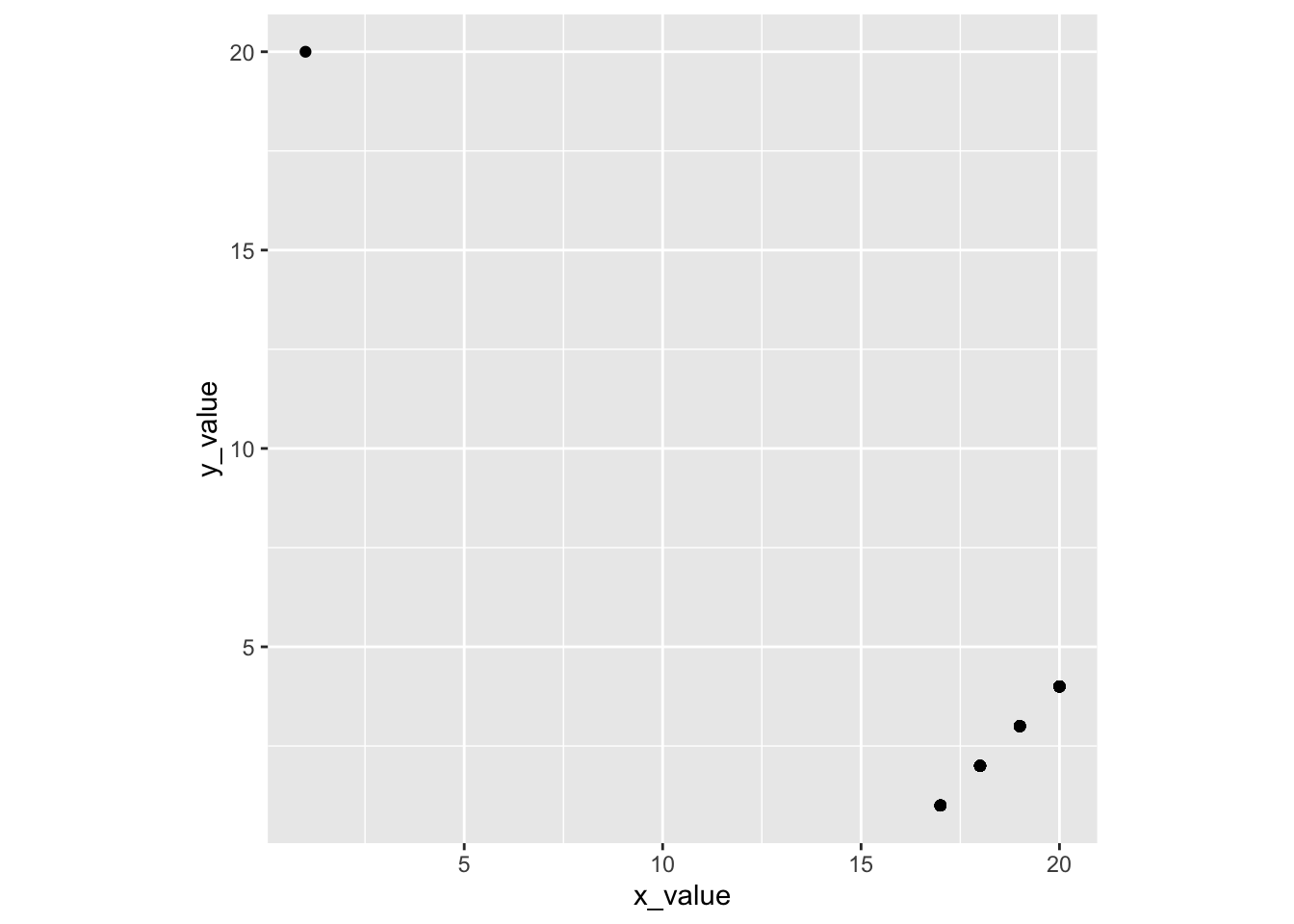 n = 101 observations: 1 observation in top left, 25 observations in each in of the points near the bottom right.